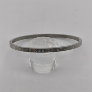 Jonc en acier inoxydable avec message gravé. Disponible en plusieurs couleurs et tailles.