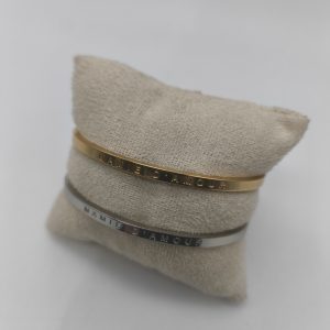Découvrez nos joncs en acier inoxydable, chacun orné d’un message gravé porteur de sens. Inspirants, élégants et intemporels, ces bracelets sont parfaits pour accompagner votre quotidien ou offrir un cadeau unique.