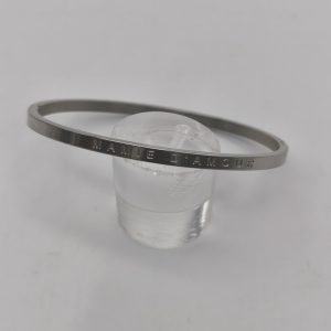 Jonc en acier inoxydable avec message gravé. Disponible en plusieurs couleurs et tailles.